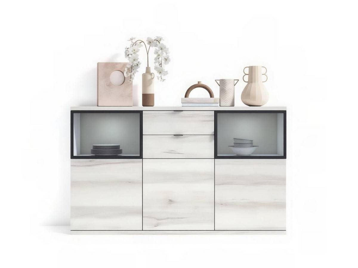 Aparador compuesto por: 2 puertas + 2 cajones y 1 puerta. Opción puerta cristal.