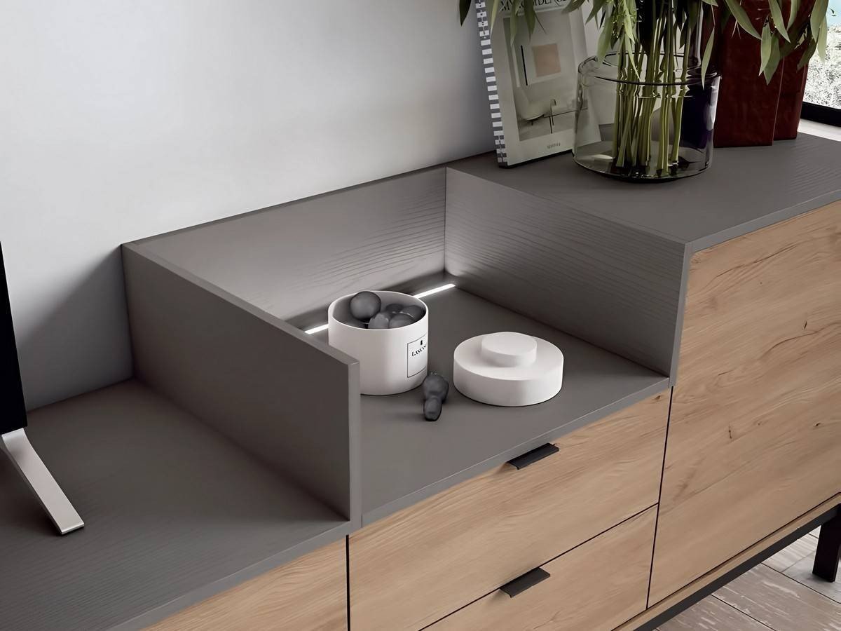 -Interiores y gualderas de cajones en color textil.