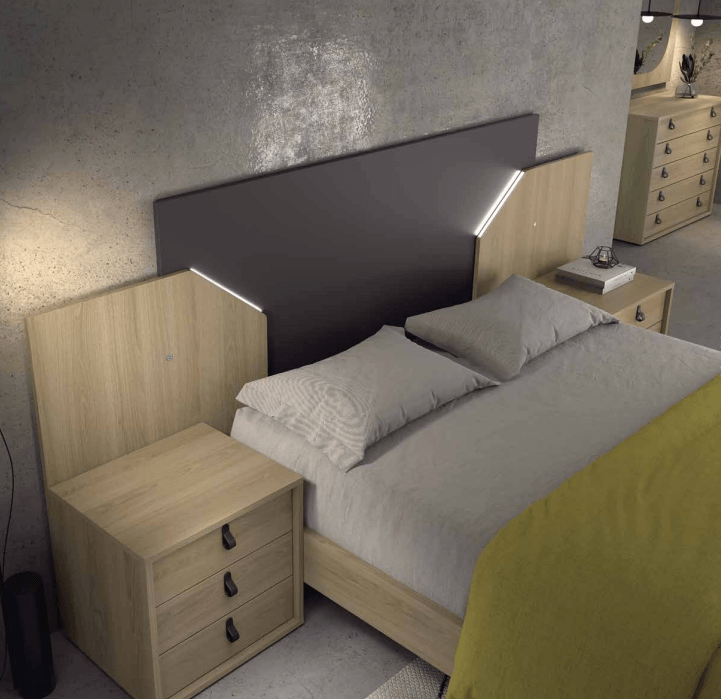 Dormitorio compuesto por: Cabecero + mesitas.