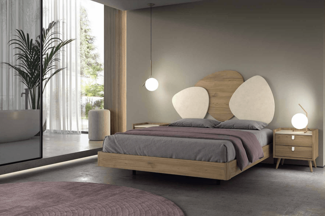 Dormitorio compuesto por: Cabecero + mesitas + juego de patas.