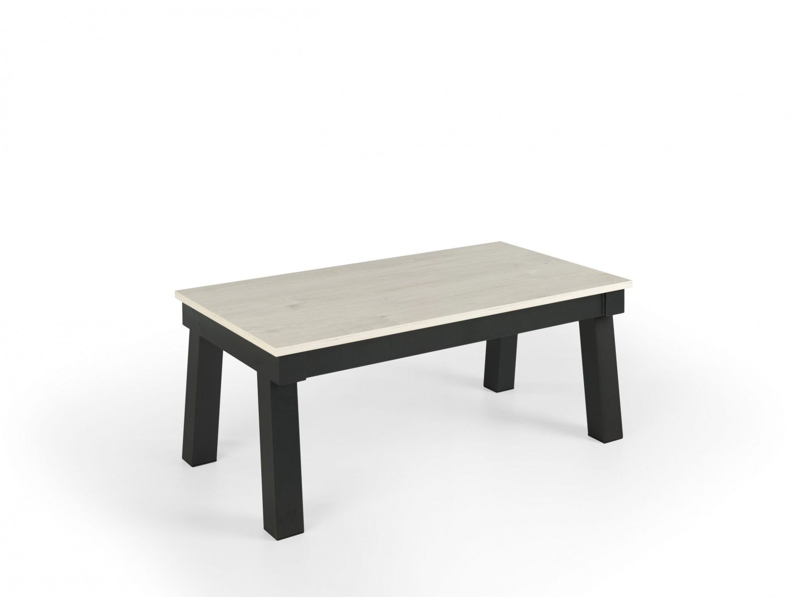 Mesa de centro elevable con patas metálicas.