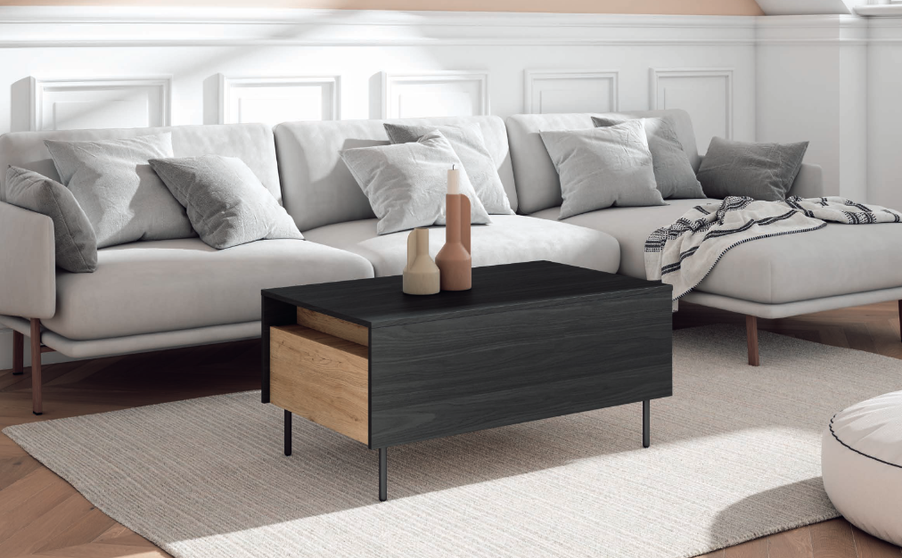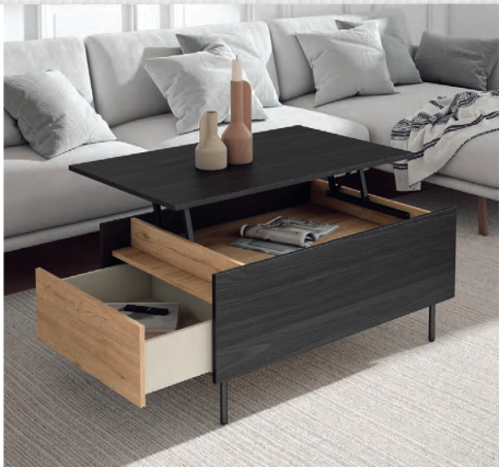 Mesa de centro elevable + 2 cajones laterales.