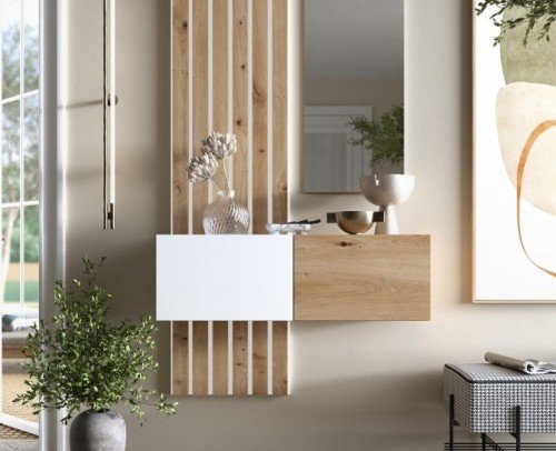 Entradita: Panel barras + alto 1 cajón + espejo.